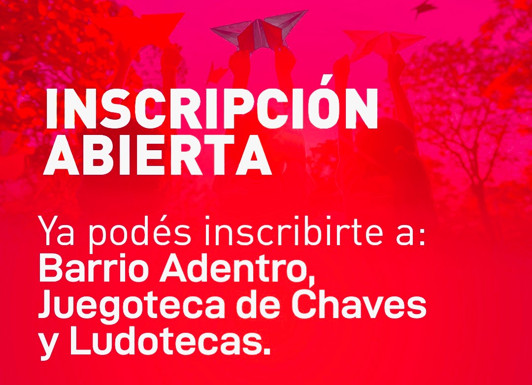 Chaves Municipio informa que ya se encuentra abierta la inscripción a los dispositivos Barrio Adentro, Juegoteca y Ludotecas en las localidades del distrito.