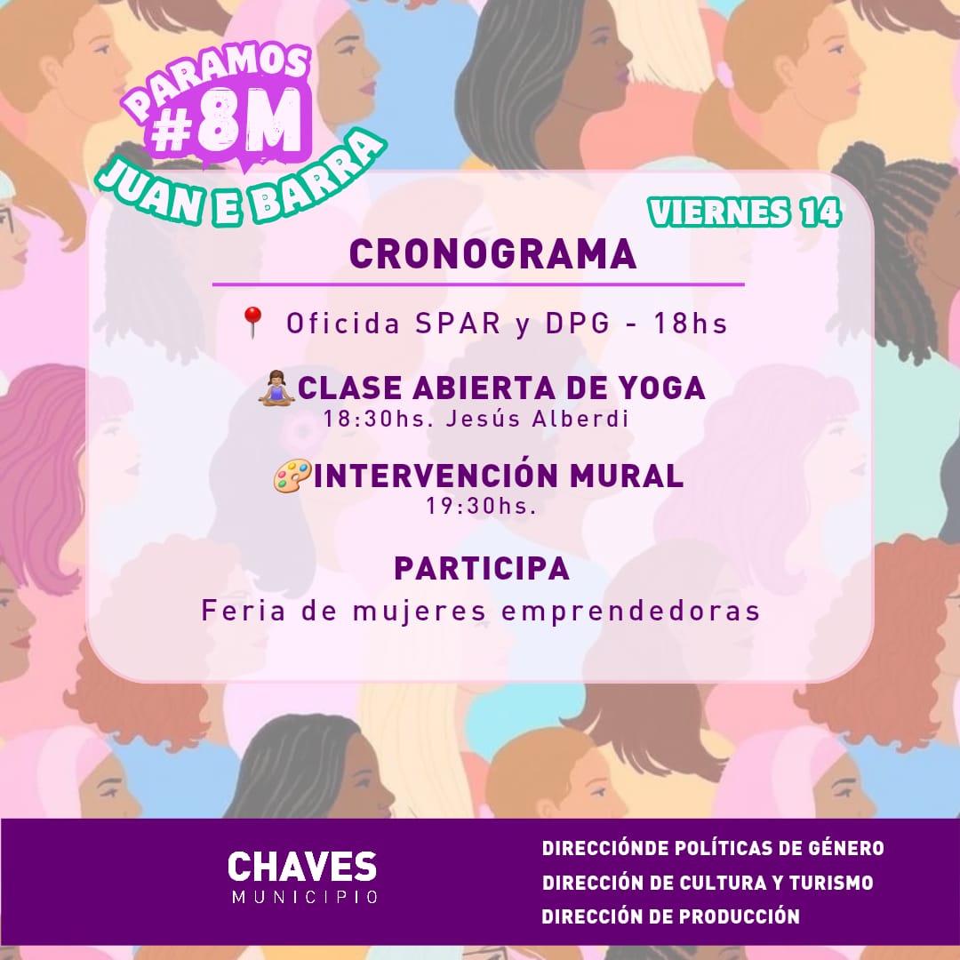 En el marco del Mes de la Mujer y en vísperas del 8M, día en el que se conmemora la lucha internacional por los derechos de las mujeres, se ha trabajado de manera conjunta entre la Dirección de Políticas de Género, la Dirección de Cultura y Turismo, y la Dirección de Producción para ofrecer un enriquecedor cronograma de actividades. Estas iniciativas incluyen una bicicleteada, que partirá el sábado 8 a las 16:45 hs desde la Casita de Lipolcc, ubicada en Avenida Dori 50. A las 17:45 hs, se ofrecerá una clase abierta de yoga a cargo de Ana María Blaiotta, seguida, a las 18:30 hs, por un taller de gestión menstrual y una intervención artística titulada «Su Paso dejó Huellas», coordinada por «Lalo2 Arias. Además, se invita a participar en la Feria de Mujeres Emprendedoras, que promete ser un espacio de encuentro y apoyo a proyectos liderados por mujeres de la comunidad. Estas actividades no solo promueven el reconocimiento y la visibilización de las mujeres, sino que también refuerzan el compromiso con la igualdad y el empoderamiento.