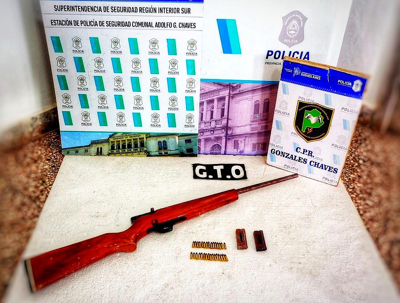 Personal del Comando de Prevención Rural de Adolfo Gonzales Chaves, en colaboración con el Gabinete Investigativo, llevó a cabo un allanamiento en la zona de Estación Vázquez. Durante el operativo, se incautaron armas de fuego, cargadores y municiones, todos sin la documentación correspondiente.