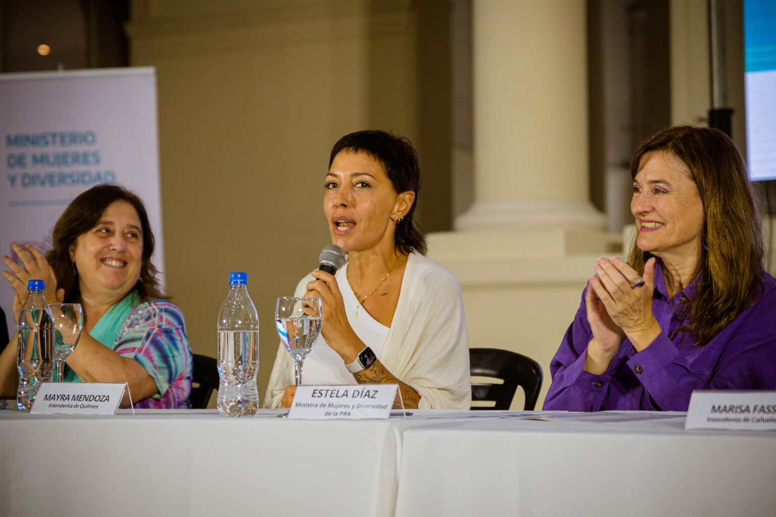 En este marco, Estela Díaz expresó: “En esta provincia mantenemos la institucionalidad porque fue construida gracias a la lucha de las mujeres y las diversidades y porque sabemos que quieren arrasar con todo lo público, con el Estado presente” y agregó: “Además, tenemos a este gran conductor del gobierno de la provincia de Buenos Aires, Axel Kicillof, que se planta donde hay que plantarse y todos los días redobla el esfuerzo y el compromiso para que a nuestro pueblo bonaerense, a las mujeres, a los varones, a las y los jóvenes, a las personas mayores, este Estado le siga dando respuestas”.