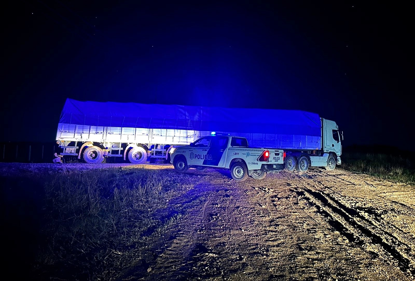 En la madrugada del domingo, personal del Comando de Prevención Rural de Adolfo Gonzales Chaves realizó la interceptación de un camión marca Renault con semirremolque Lambert. El vehículo transitaba por un camino vecinal que se encontraba en condiciones embarradas debido a las precipitaciones recientes, lo que resultó en daños visibles sobre la traza rural correspondiente al Cuartel XIV, en inmediaciones de la localidad de Juan E. Barra.