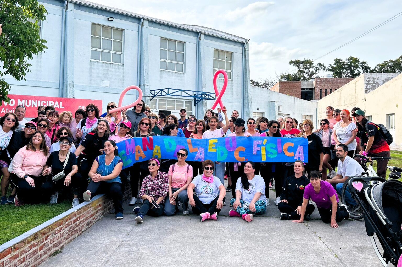 Un numeroso grupo de vecinos y vecinas participó este viernes de la Bicicleteada Rosa, una propuesta que se desarrolló en el marco del Mes Rosa y la Semana de la Educación Física.