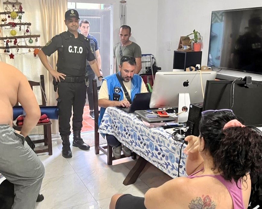 Con los datos obtenidos se constató el domicilio de los involucrados y a través de exhorto Judicial se requirió el respectivo registro domiciliario de una mujer identificada como MARCELA ADRIANA SACCO a quien se le secuestro en poder una gran cantidad de tarjetas de Crédito, Débito, PCs, Notebook, anotaciones, teléfonos y otros elementos de almacenamiento.