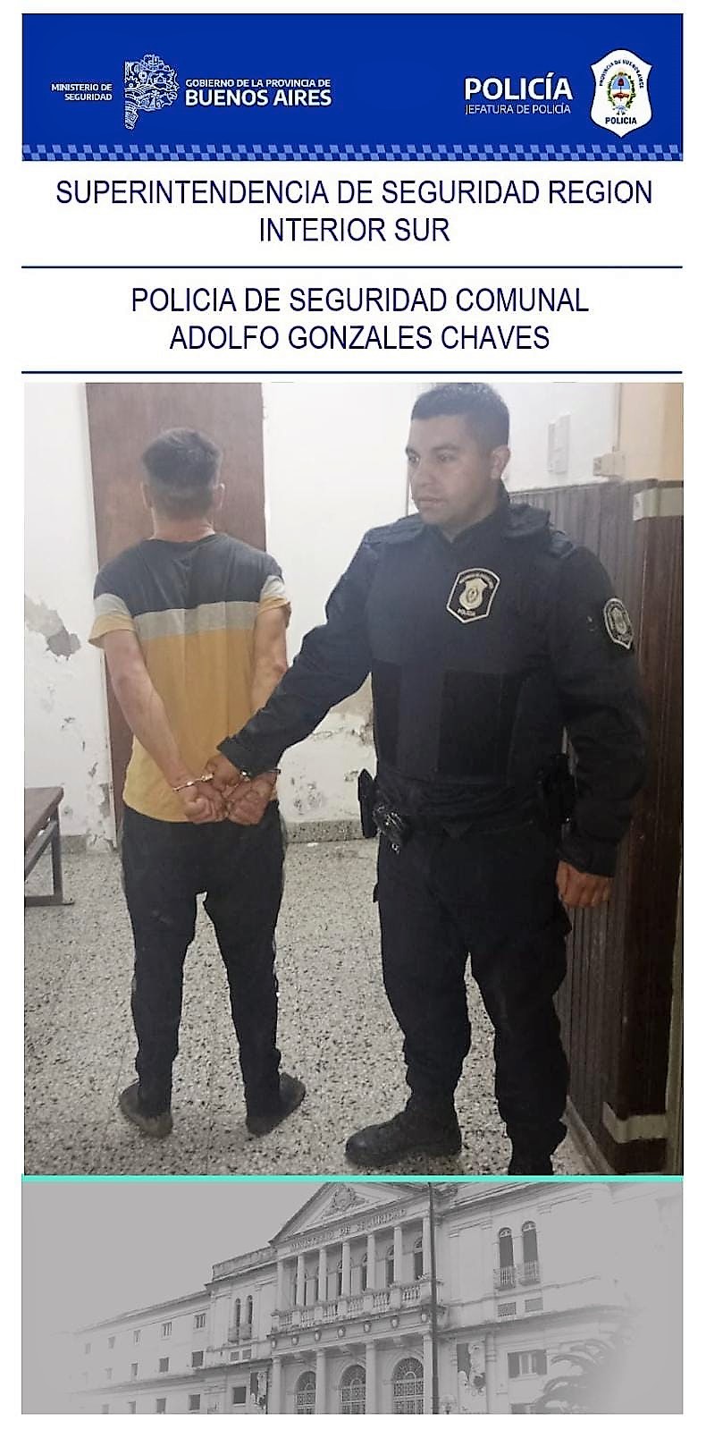 La policía Chávense inauguró el año con la aprehensión de un sujeto que apuñaló en la mano a su hermano en el marco de la cena de fin de año.
