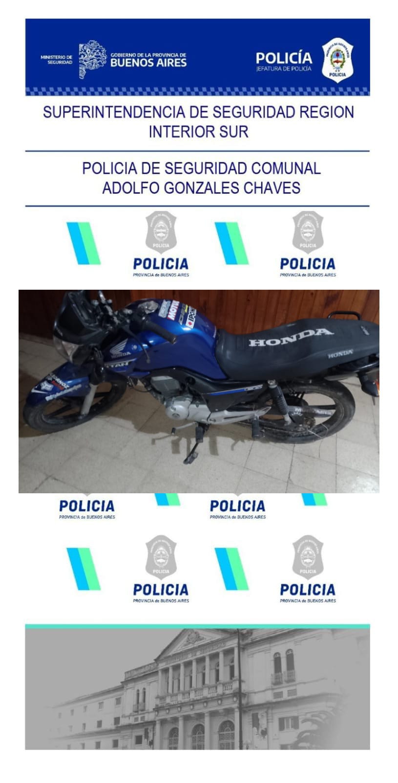 El hecho se desarrolló pasada las 19:00hs, momento en el que dos sujetos, identificados como; PABLO SEBASTIAN GONZALEZ y GIANFRANCO SANCHEZ, mayores de edad y oriundos de Tandil, sustraen de calle América, una motocicleta HONDA TITAN 150cc, con la que inmediatamente emprenden viaje en dirección a TANDIL.