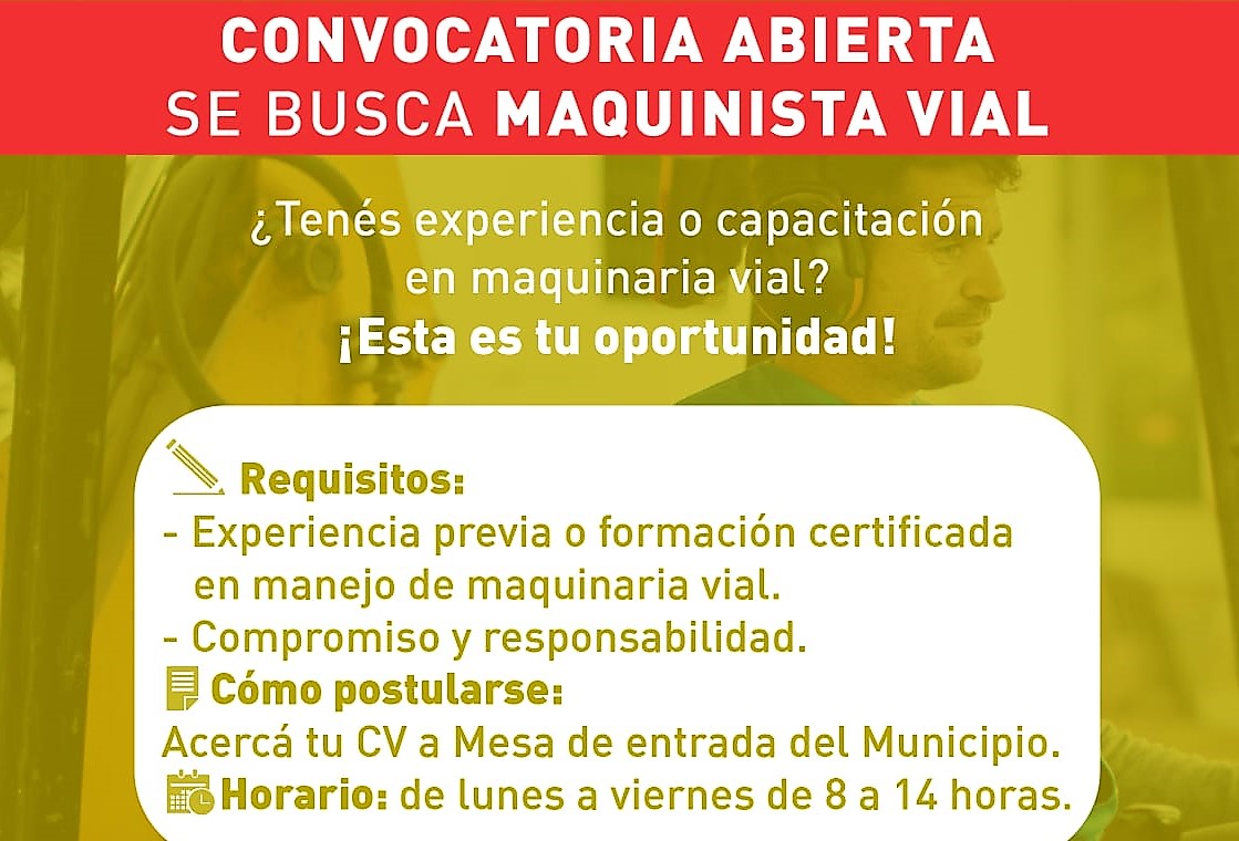 Chaves Municipio lanza una convocatoria para cubrir el puesto de Maquinista Vial, una oportunidad para quienes cuenten con experiencia o formación certificada en el manejo de maquinaria vial.