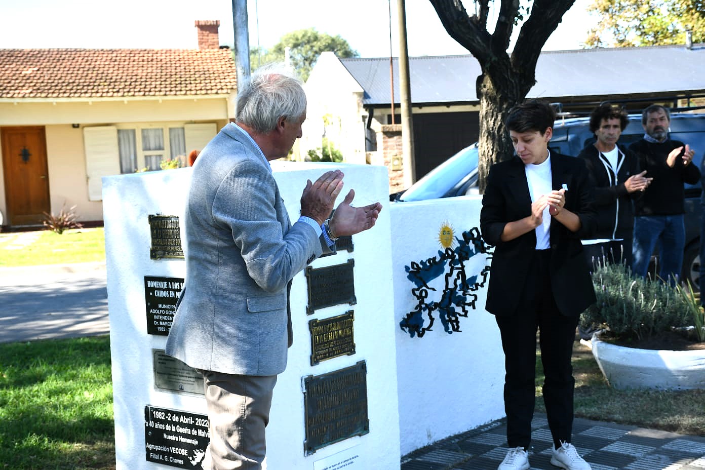 Durante la jornada, la jefa comunal y un representante de Vecose realizaron el descubrimiento de placas conmemorativas en homenaje a los veteranos y a los caídos en Malvinas.