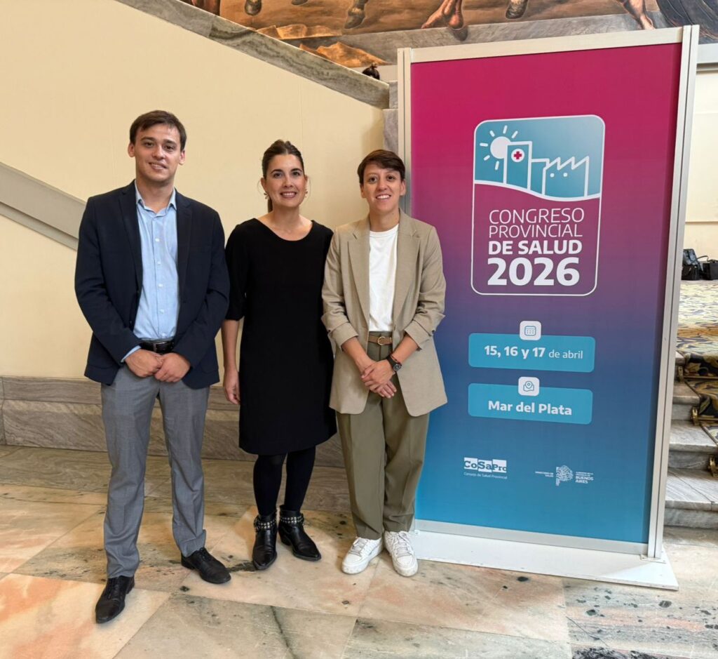 La intendenta Lucía Gómez participó del Congreso Provincial de Salud (COSAPRO 2026), que se desarrolló en la ciudad de Mar del Plata, junto a la secretaria de Salud, Cinthia Cancelarich, y el administrador del Hospital Anita Eliçagaray, Agustín Cepeda.
