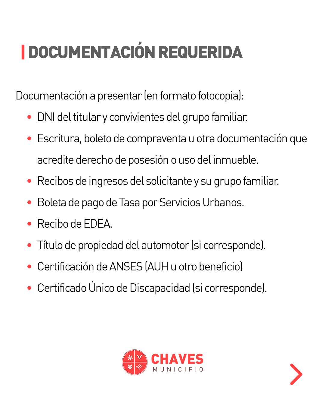 Chaves Municipio informa que desde el 3 hasta el 28 de noviembre inclusive estará abierta la inscripción para acceder a la eximición de la Tasa de Servicios Urbanos correspondiente al año 2026.