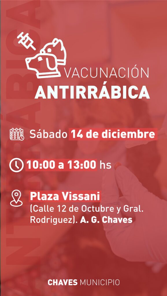 La Oficina de Bromatología e Inspección Veterinaria de Chaves Municipio continúa desarrollando la Campaña de Vacunación Antirrábica durante diciembre, con el objetivo de inmunizar contra la rabia a los perros y gatos de la localidad.