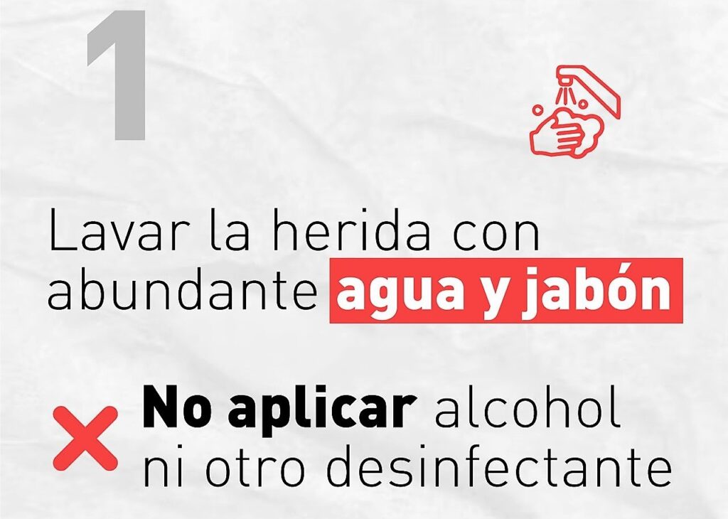 - Lavar inmediatamente cualquier herida causada por una mordedura y buscar atención médica.