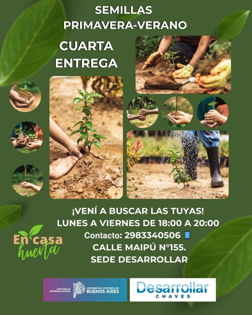 La ONG Desarrollar informa que ya se encuentra disponible la cuarta entrega de los kit de semillas variadas de estación, para que los vecinos puedan retirarlas de manera gratuita.