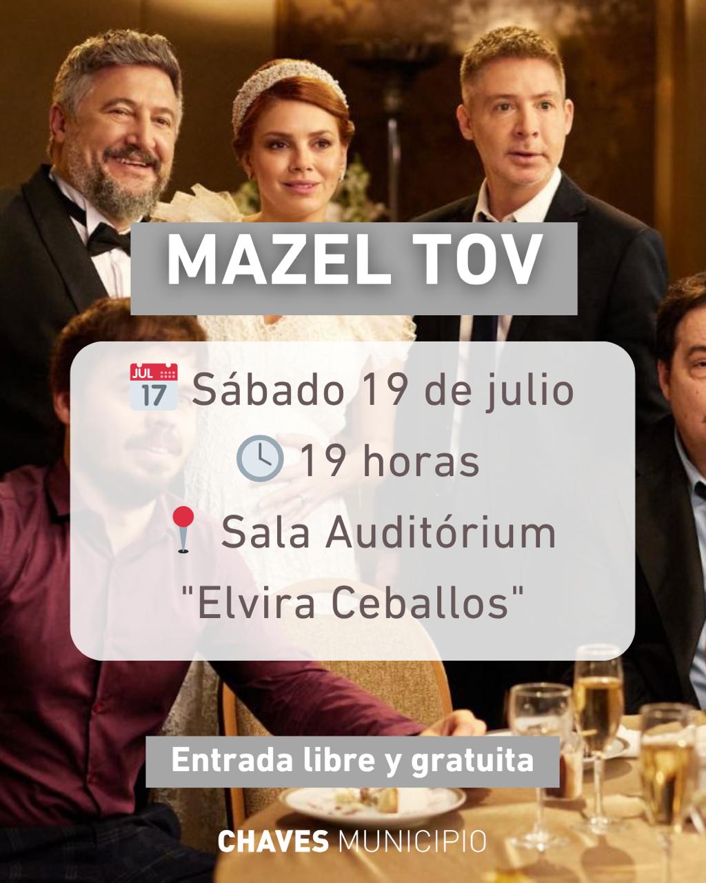 Este Sábado 19 vecinos y visitantes están invitados a disfrutar de la película “Mazel Tov”, una comedia argentina ideal para compartir en familia, reír y pasar un buen momento. La proyección se enmarca en el programa Invierno en Movimiento, que ofrece actividades culturales gratuitas todos los días durante las vacaciones de invierno.