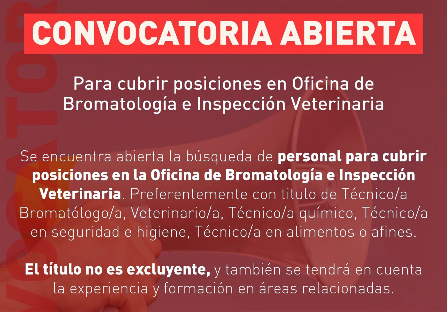 Chaves Municipio, a través de la Oficina de Bromatología e Inspección Veterinaria, abre la convocatoria para cubrir nuevas posiciones en el área.