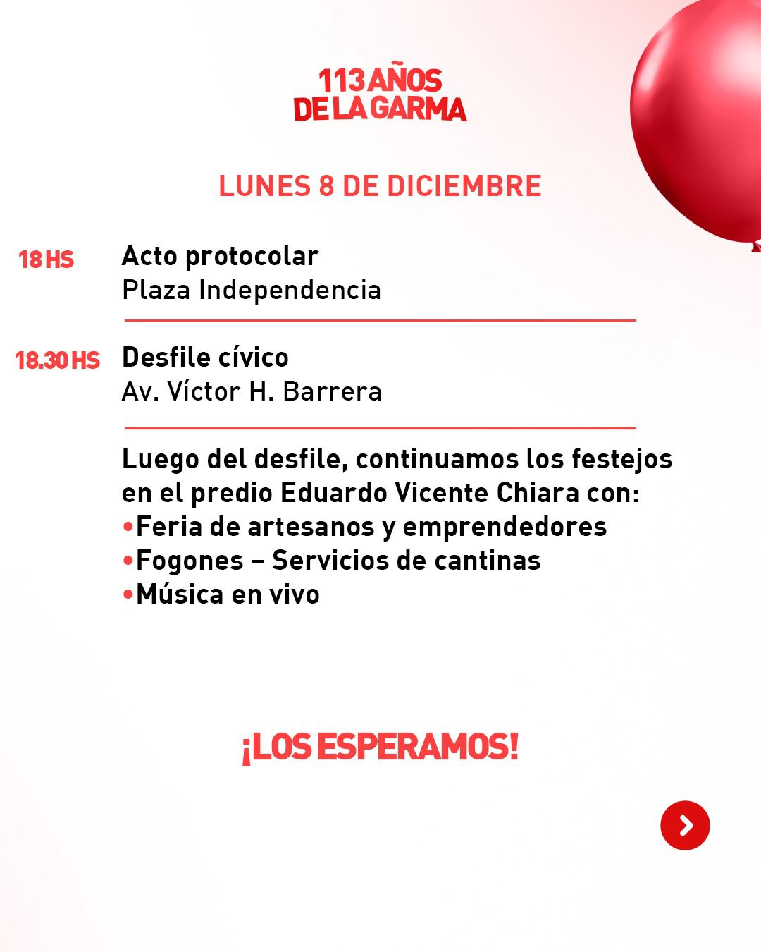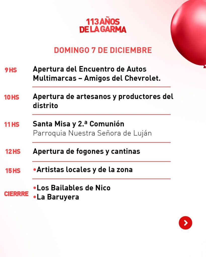 Chaves Municipio recuerda e invita a toda la comunidad a ser parte de los festejos por el 113.º aniversario de De La Garma, que se celebrará con dos jornadas repletas de propuestas culturales, recreativas y tradicionales los días 7 y 8 de diciembre.