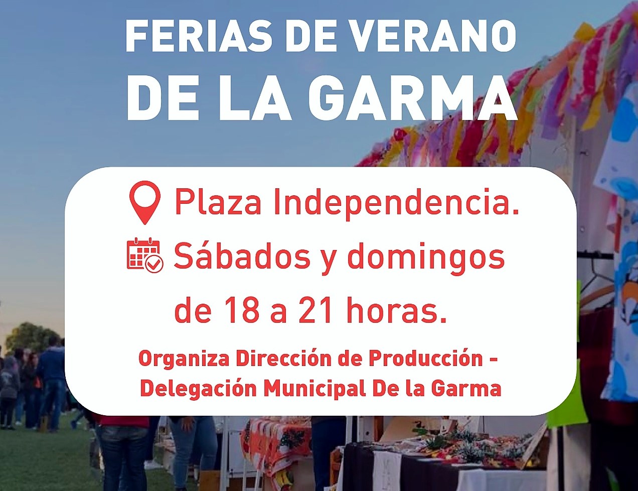 La Oficina de Producción de De la Garma junto a la Delegación Municipal se complacen en anunciar la realización de las esperadas Ferias de Verano, un evento pensado para disfrutar en familia y con amigos en pleno corazón de nuestra comunidad.