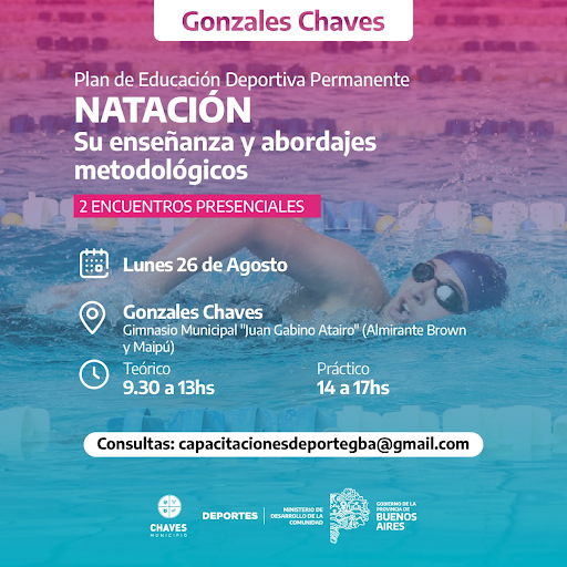 El Plan de Educación Deportiva Permanente estará presente en Gonzales Chaves con una capacitación sobre natación y estará a cargo del capacitador de Adrian Bello.