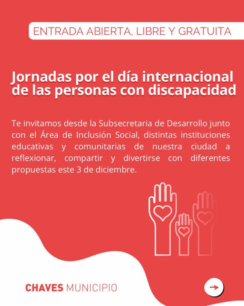 Este martes 3 de diciembre, el Municipio de Adolfo Gonzales Chaves invita a toda la comunidad a participar de las Jornadas por el Día Internacional de las Personas con Discapacidad, una iniciativa que busca promover la reflexión, la inclusión y el disfrute compartido.