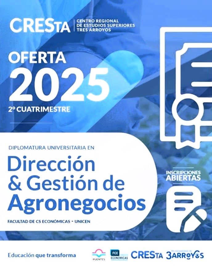 Garibotti confirmó que está abierta la preinscripción a la Diplomatura en Gestión y Dirección de Agronegocios (DiGeA), que se ofrecerá de manera semipresencial en el Cresta y también en Gonzales Chaves, articulado con el programa Puentes.