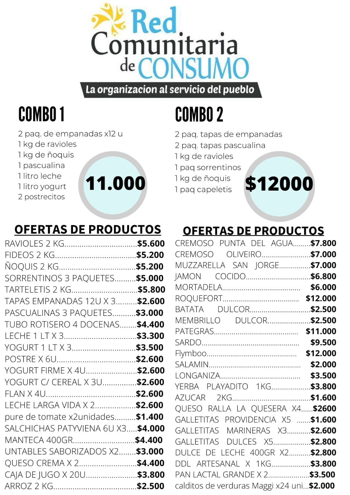 • Combo 1: empanadas, ravioles, ñoquis, leche, yogur y postres – $11.000