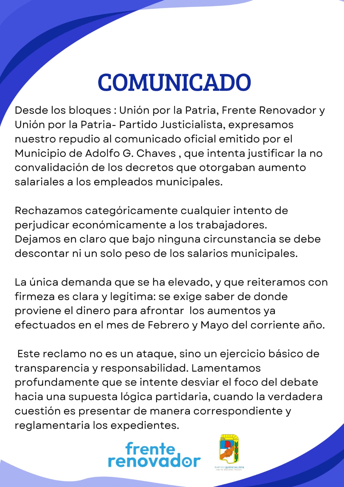 Bloques opositores exigen que no se descuenten aumentos ni se perjudique a trabajadores municipales. El pedido, afirman, no es partidario sino un ejercicio legítimo de responsabilidad institucional.