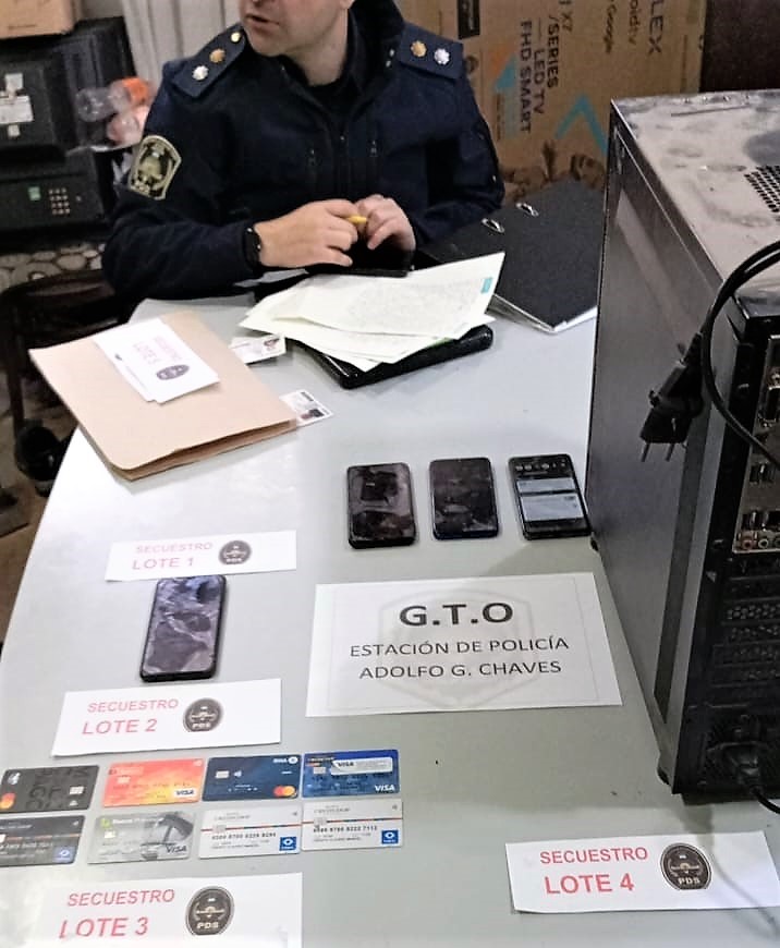 Al momento se imputó a un hombre mayor de Necochea en orden al delito de estafa y producto del allanamiento se secuestraron tarjetas de crédito/débito, teléfonos, PC y otros elementos que serán peritados para el avance de la causa y fundamentalmente establecer la identidad de otros cómplices, como ingenieros informáticos que facilitan la creación de software específicos para perpetrar los ilícitos.