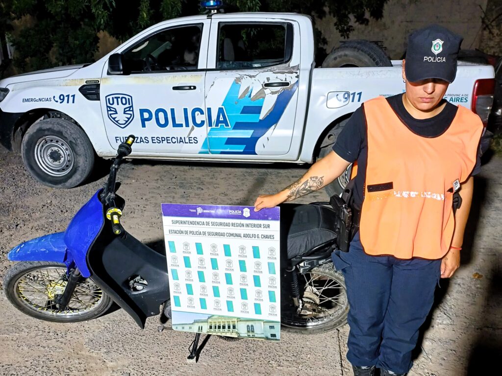Asimismo, se procedió al secuestro de la segunda motocicleta marca Mondial 110 cc por infracciones a la Ley Nacional de Tránsito N° 24.449, como así también de armas blancas utilizadas por los implicados.