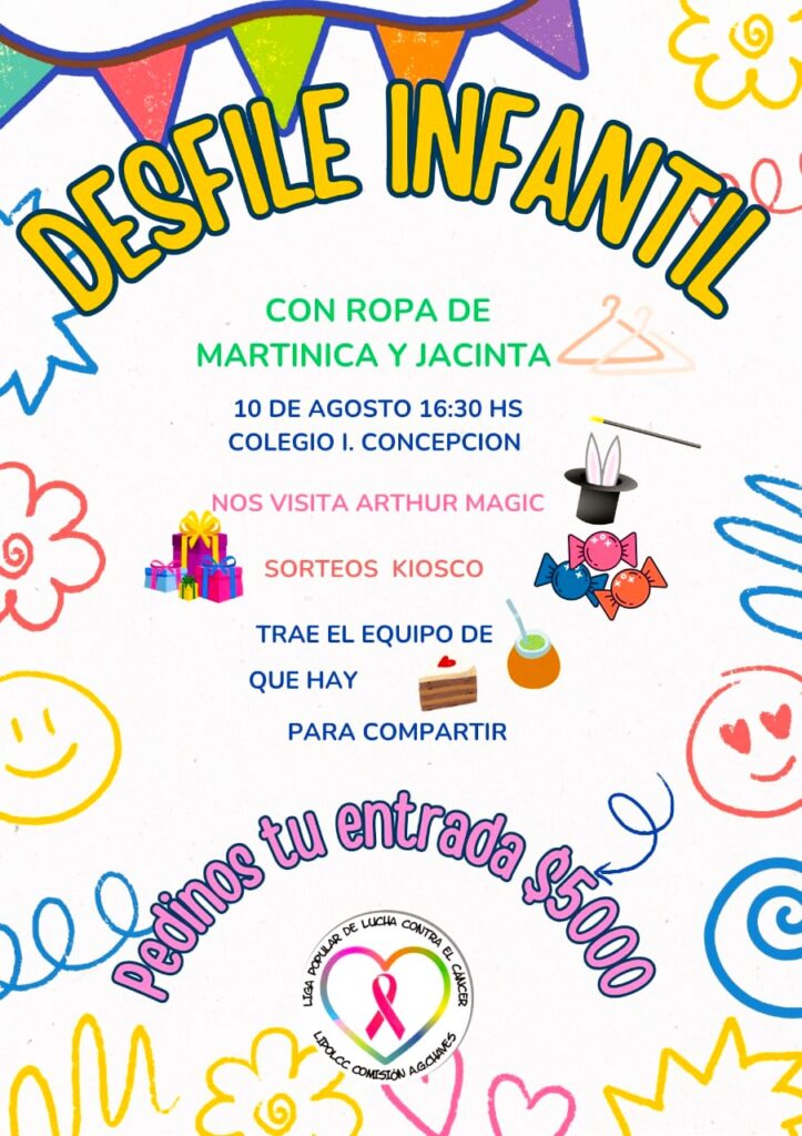 La filial de Lipolcc en Adolfo Gonzales Chaves invita a toda la comunidad a disfrutar del Desfile Infantil, que se realizará el próximo 10 de agosto a las 16:30 horas en el Colegio Inmaculada Concepción.