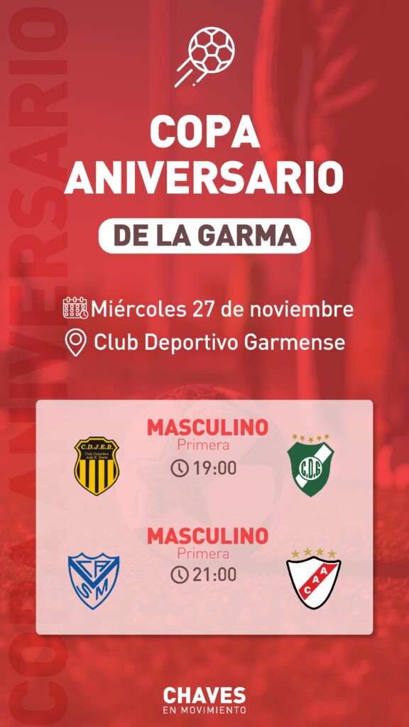 La Dirección de Deportes de Adolfo Gonzales Chaves anunció los encuentros de la nueva edición de la Copa De la Garma, que dará inicio este martes 26 de noviembre como parte de las actividades programadas para celebrar el 112° aniversario de la localidad.