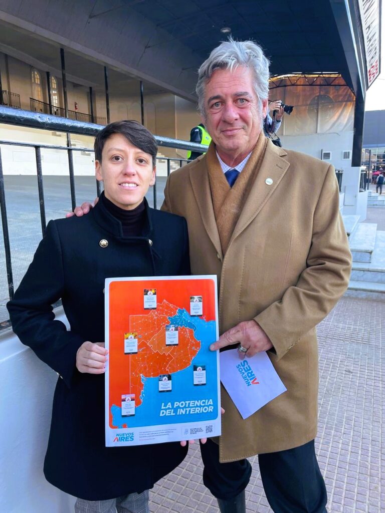 “Le presentamos a Nicolás Pino una declaración de principios, de defensa del interior y de lo productivo. Vengo de Gonzáles Chaves, del interior profundo, y con este proyecto que estamos proponiendo desde Aires del Campo, enmarcado en la provincia de Buenos Aires con el frente Nuevos Aires, le decimos basta al gobierno nacional de atropellos al sector productivo”, planteó.
