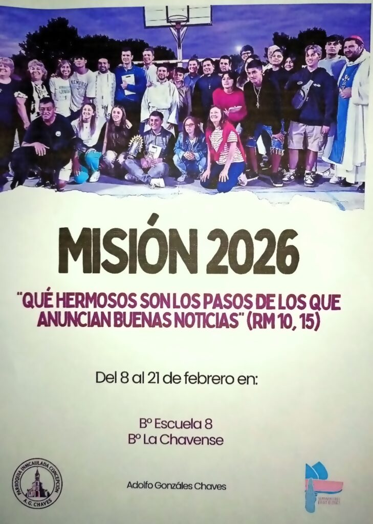 Habiendo tomado conocimiento de la concreción de la Misión de los Seminaristas 2026 en Adolfo Gonzales Chaves, que se llevará a cabo del 8 al 21 de febrero del corriente año, tuvimos la posibilidad de dialogar con Alejandra Rodríguez y Marcos Cepeda, miembros activos y referentes de la Parroquia Inmaculada Concepción de nuestra ciudad, quienes han asumido con compromiso la responsabilidad de acompañar y difundir este acontecimiento. Nos transmitieron con emoción y profundo respeto lo que significa para ellos formar parte de un encuentro tan trascendente, en el que se han planificado diversas actividades pastorales, comunitarias y culturales, orientadas a fortalecer la fe, la solidaridad y la participación de todos. La Misión, señalaron, tiene como objetivo renovar el espíritu evangelizador, acercar la Iglesia a cada familia y promover espacios de diálogo y esperanza, invitando a toda la población a sumarse y ser protagonistas de este tiempo de gracia y construcción comunitaria: