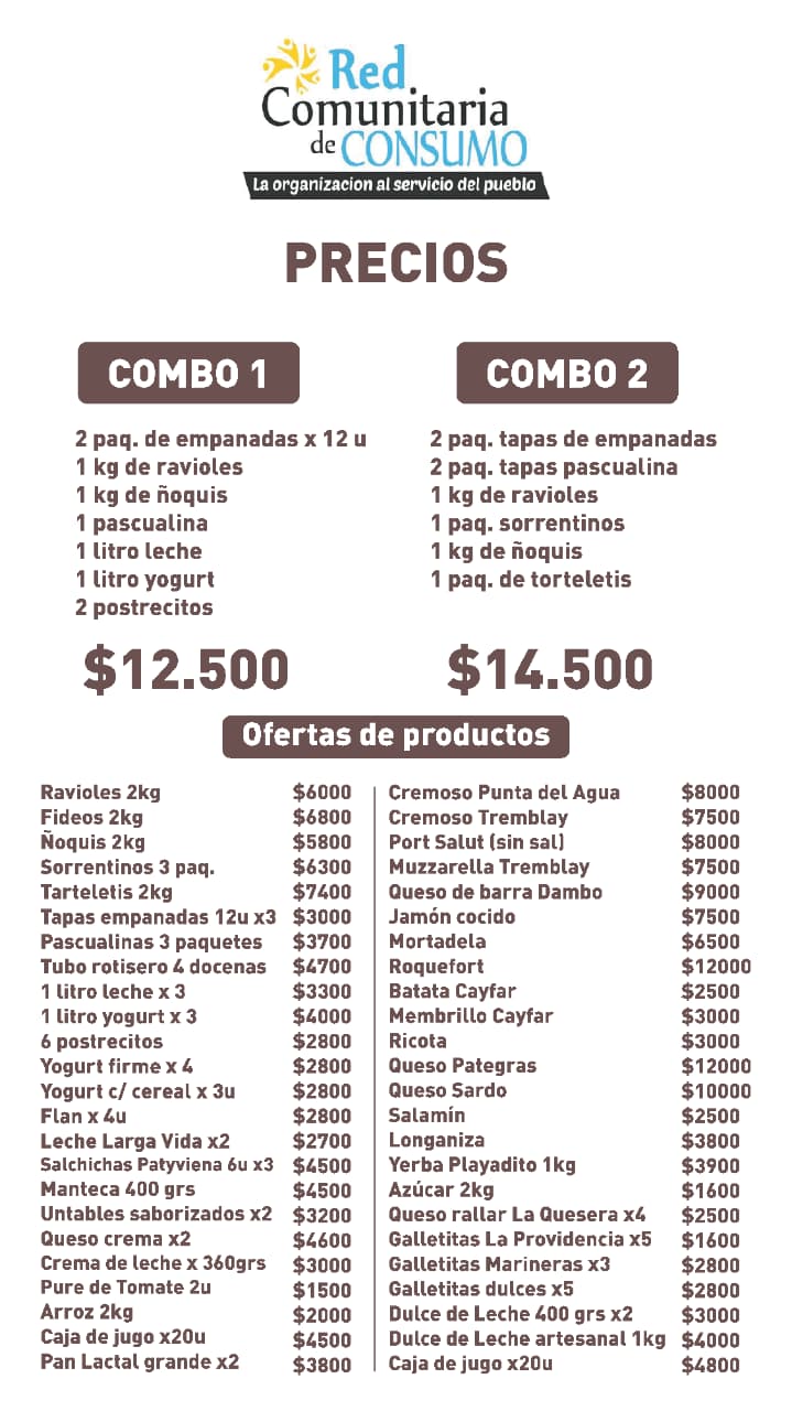 Combo 1: empanadas, ravioles, ñoquis, leche, yogur y postres, a $12.500.