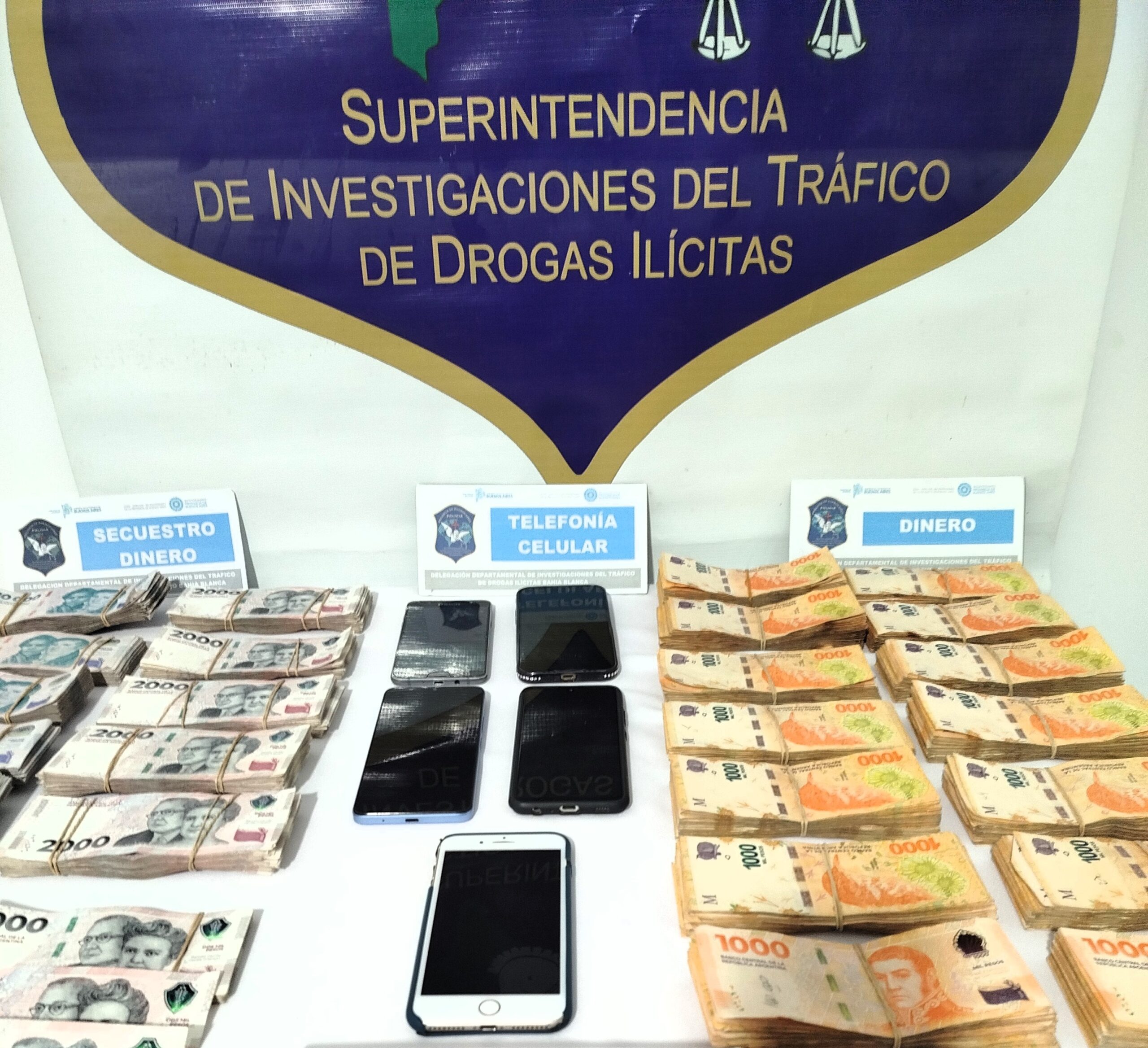 Durante el allanamiento, los investigadores procedieron al secuestro de estupefacientes, varios teléfonos celulares y una importante suma de dinero en efectivo, elementos que serán incorporados a la causa como prueba del ilícito investigado.