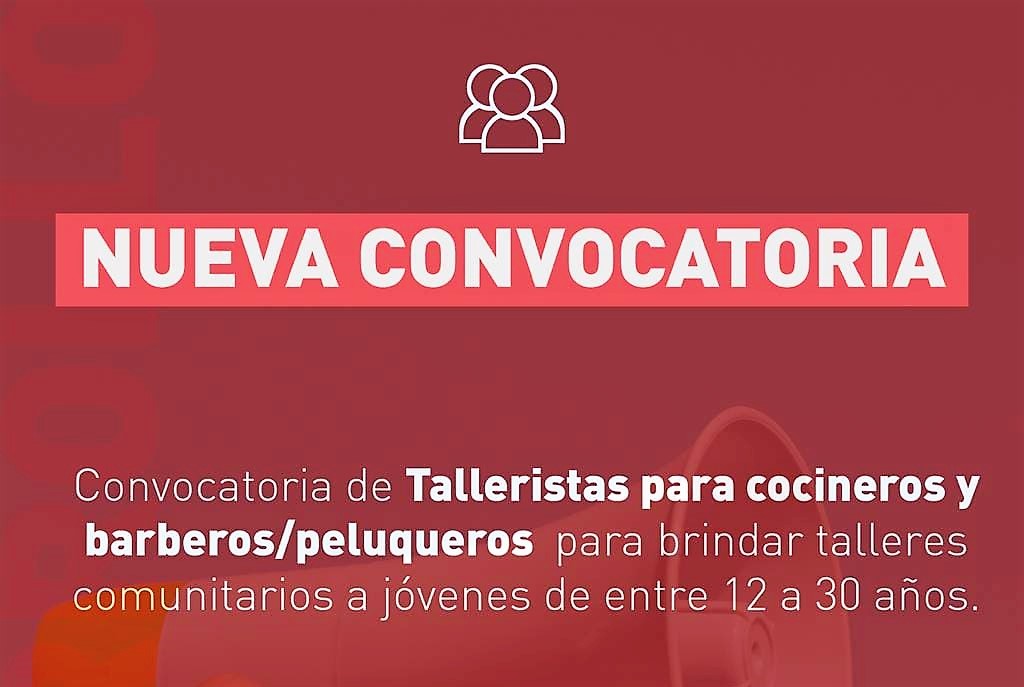 Buscamos talleristas para cocineros/as y barberos/peluqueros/as que quieran compartir sus conocimientos con jóvenes de entre 12 y 30 años en talleres comunitarios.