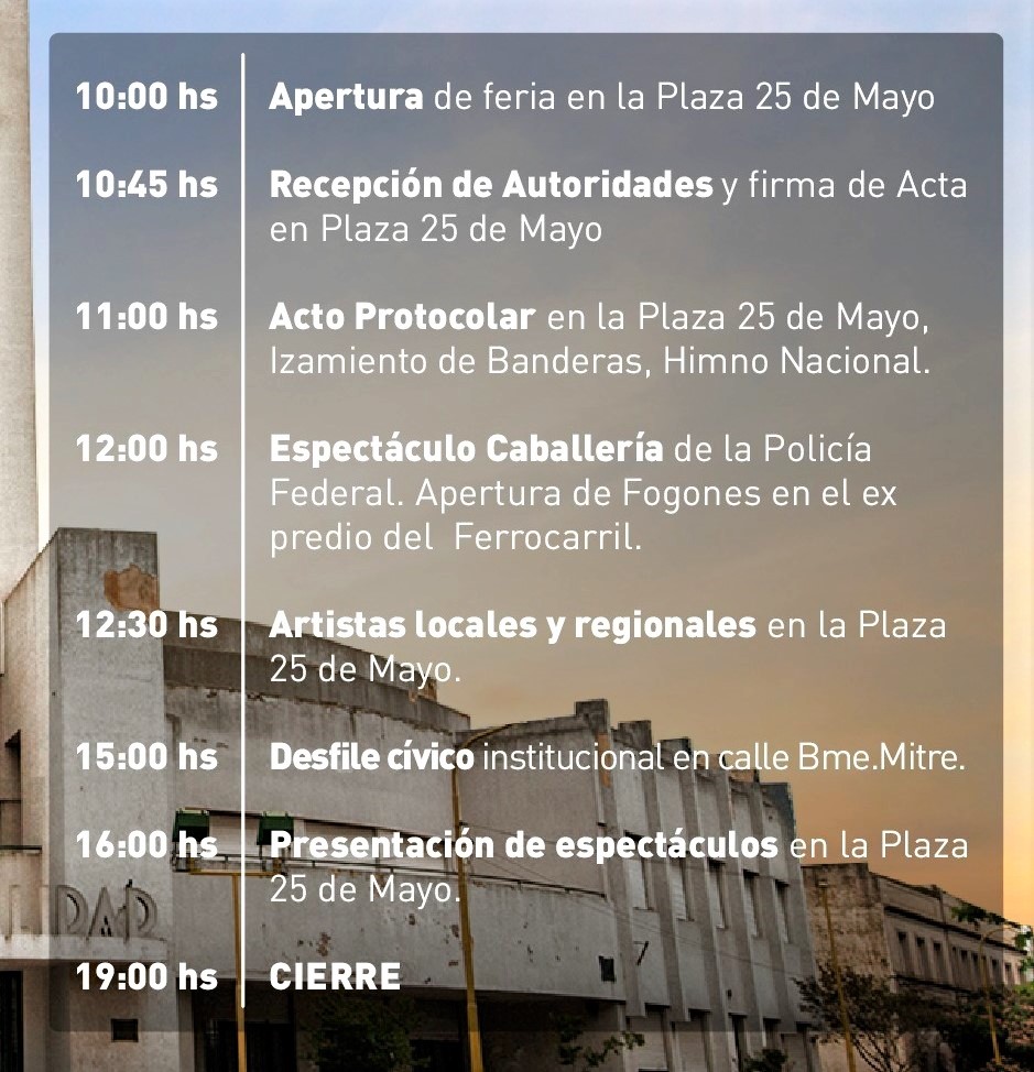 Se solicita a los vecinos y vecinas su colaboración para liberar el estacionamiento de vehículos antes y durante el desfile en la calle Bartolomé Mitre, entre Avenida San Martín y General Paz, así como en los alrededores de la Plaza 25 de Mayo.